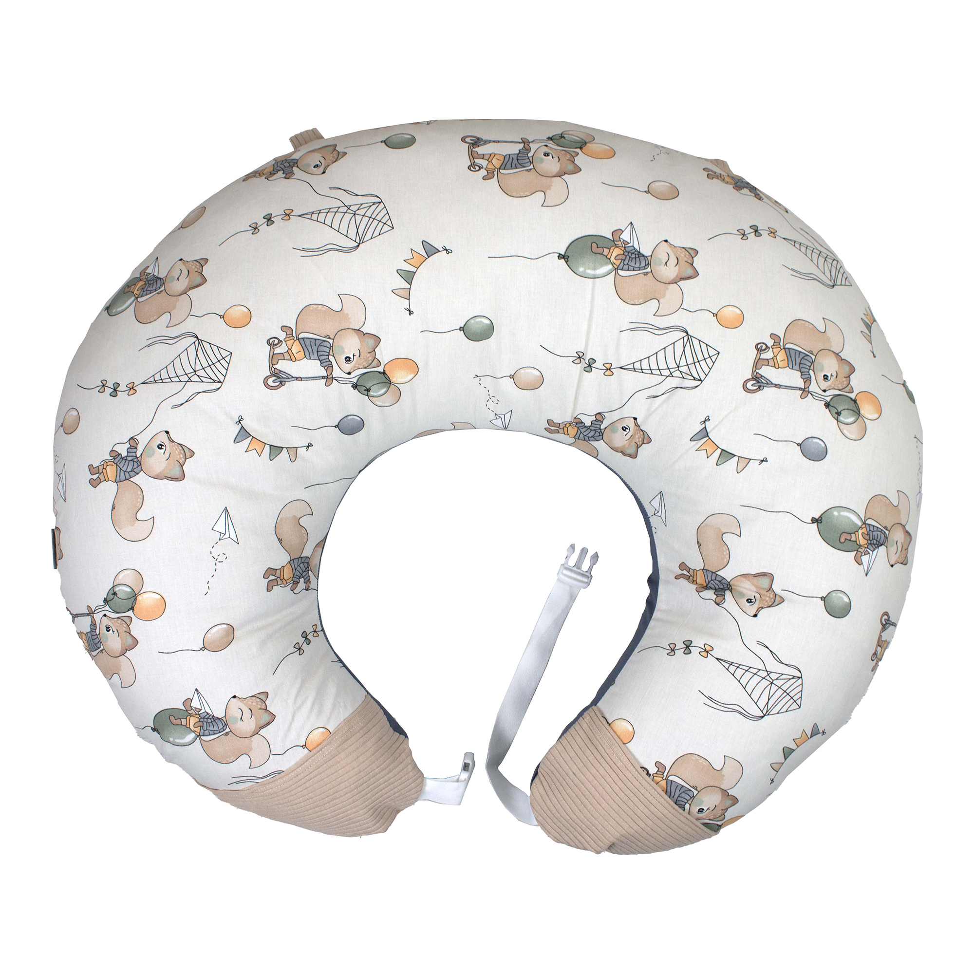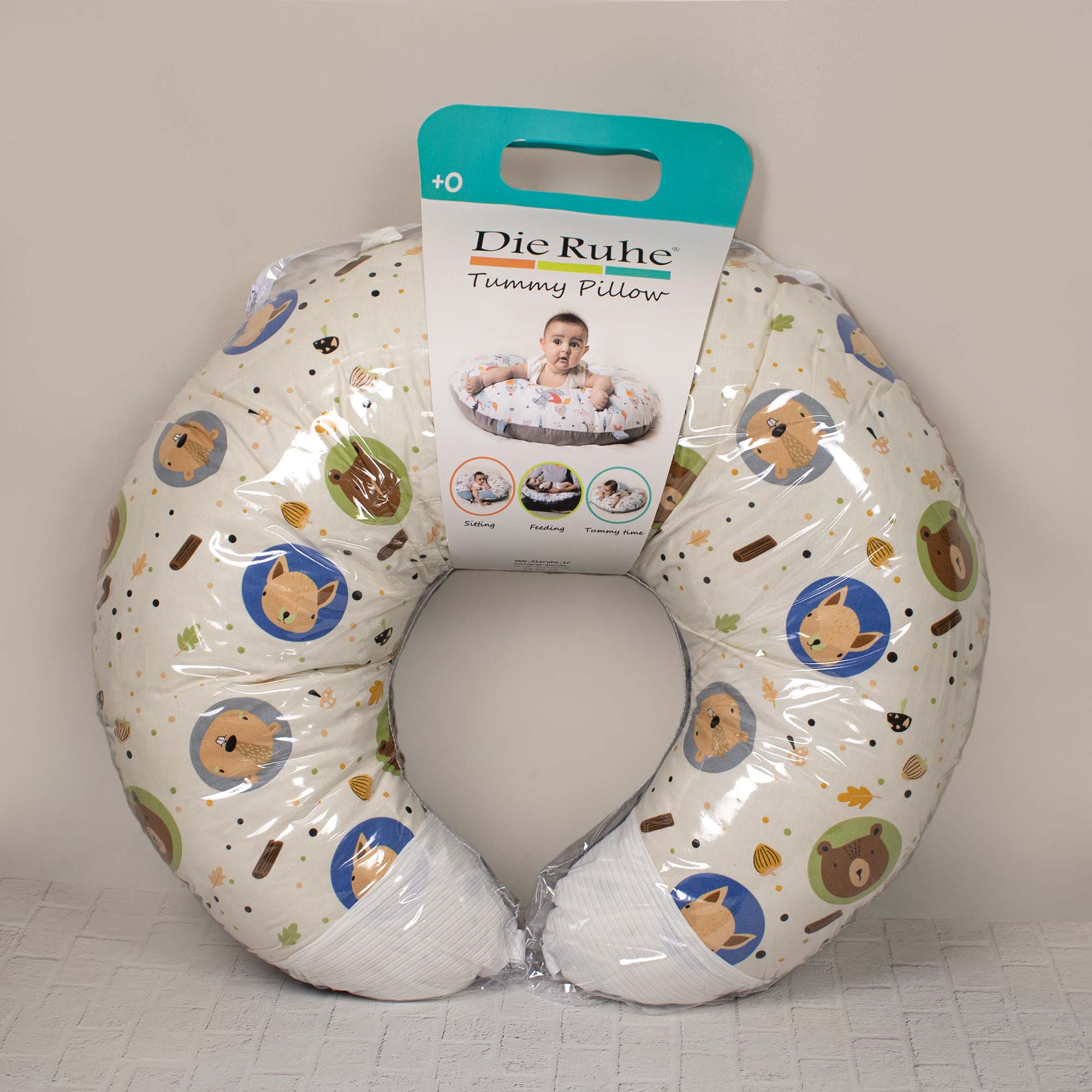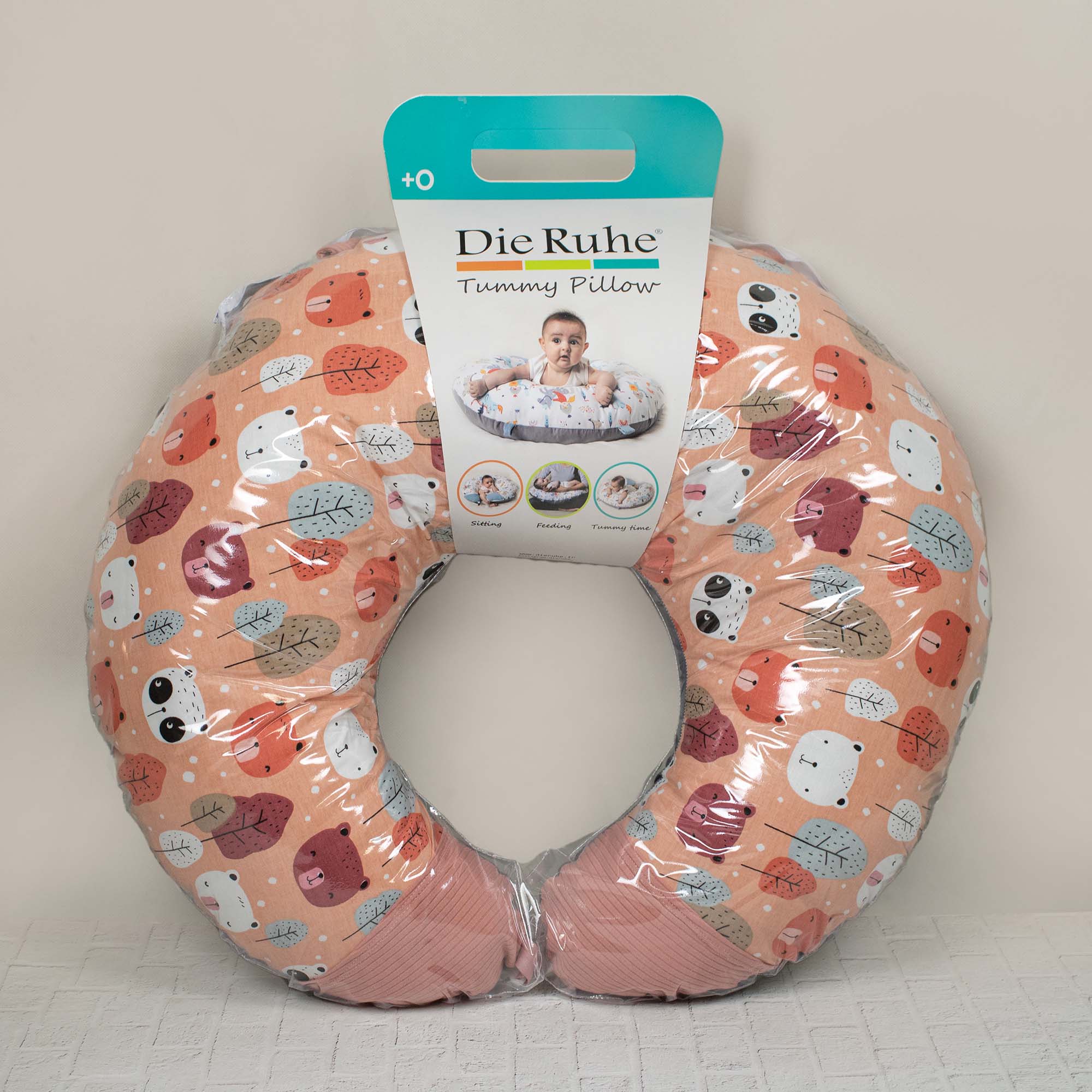 تامی پیلو طرح روباه دی روحه Die Ruhe یک بالش چند منظوره است. این بالش به عنوان بالش شیردهی به راحتی با بند به کمر مادر بسته می شود و مادر و نوزاد را در وضعیت ارگونومیک قرار می دهد تا شیر دادن را راحت تر کند و از کمردرد و آسیب های گردن و شانه جلوگیری کند. هم چنین در این حالت می توانید از جیب های این بالش برای قرار دادن پد شیردهی یا وسایل دیگر استفاده کنید. کاربرد دیگر این بالش به عنوان بالش تامی تایم است. برای زمانی که لازم است نوزاد به شکم دراز بکشد. در این حالت می توانید به دو حلقه ای که در بالش وجود دارد دندان گیر یا اسباب بازی های مورد علاقه فرزندتان را آویزان کنید تا کودک از این وضعیت خوابیدن لذت بیشتری ببرد. کاربرد دیگر این بالش برای آموزش نشستن وبه عنوان نشیمن کودک است تا کودک در محیطی ایمن و نرم باشد و نگرانی از افتادن کودک به طرفین وجود نداشته باشد. در این حالت بهتر است با وارو کردن جیب ها بند را درون جیب های دو طرف بالش پنهان کنید تا از دسترس کودک خارج شوند.روکش این بالش از پارچه صد در صد پنبه ای تهیه شده، زیپ دارد و قابل جدا شدن و شستشو می باشد.