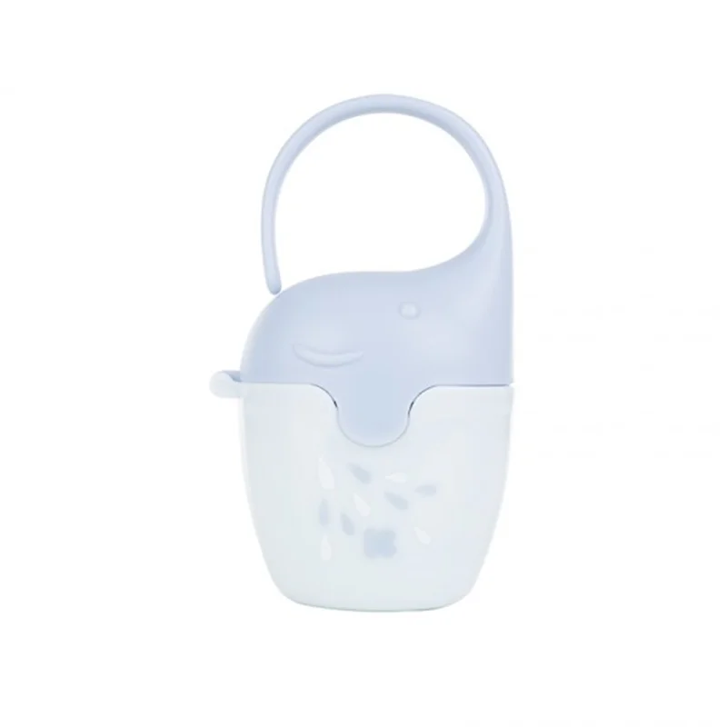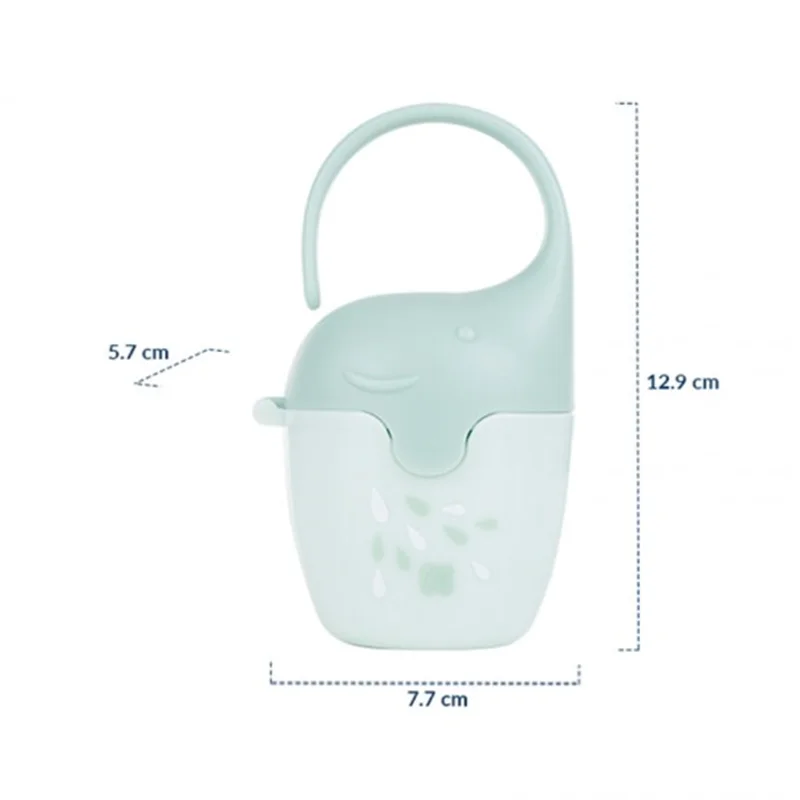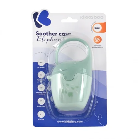 قاب پستانک کیکابو طرح فیل kikka boo به گونه ای است که به خوبی پستانک را محافظت می کند و امکان آلوده شدن پستانک به هیچ عنوان به وجود نخواهد آمد. وقتی می خواهید بیرون از منزل بروید؛ می توانید پستانک را داخل قاب بگذارید و درون ساک لوازم نوزاد قرار دهید. دارای ابعاد مناسب و قابل استفاده برای انواع پستانک نوزاد است. مناسب برای قرار دادن یک پستانک است. فاقد هرگونه مواد مضر مانند بیسفنول BPA است. از یک دستگیره برخوردار است که امکان آویزان کردن آن را به دسته کالسکه، کریر و یا حتی ساک لوازم مادر را فراهم می کند. شما می توانید آن را با آب و شوینده بشویید یا حتی به همراه سایر لوازم نوزاد خود استریل کنید.
