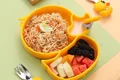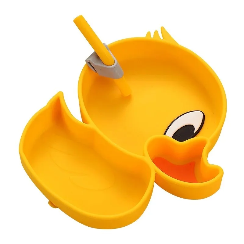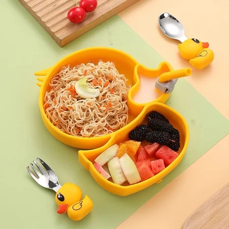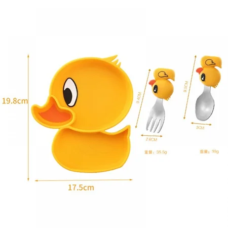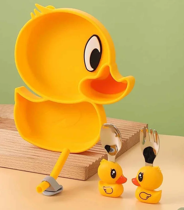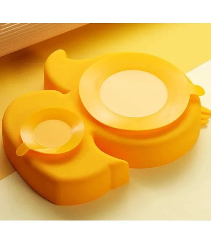 شش ماهگی زمانی مهم در مراحل رشد کودک دلبند شما محسوب می شود. زمانی که کودک غذا خوردن را آغاز می کند. در کنار شیر مادر تغذیه کودک با غذای کمکی آغاز می شود. استفاده از ظروف غذاخوری با کیفیت تاثیر مطلوبی بر این روند می گذارد . ست غذاخوری سیلیکونی طرح اردک شامل : بشقاب تقسیم بندی شده سیلیکونی - دارای قاشق و چنگال استیل با طراحی خاص -دارای نی سیلیکونی به همراه گیره برای نوشیدن مایعات است.