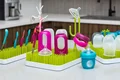 - ساختار چمن مانند این آبچکان این امکان را به شما میدهد تا تمام وسایل نوزاد، از سرشیشه تا شیشه شیر و پستانک و … را به صورت کاملا ایستاده روی آن قرار داده و خشک نمایید.