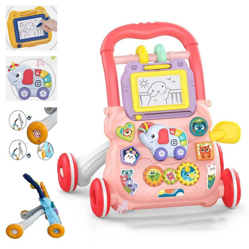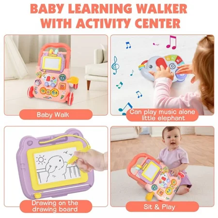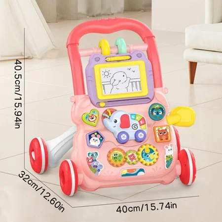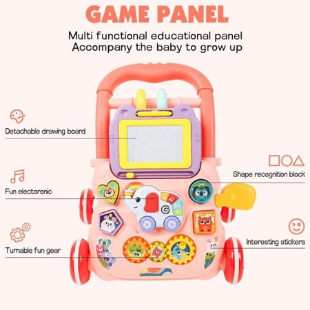 تخته ای به دسته واکر آویزان است. ماژیکی مخصوص دارد که کودک شما با آن نقاشی می کند.