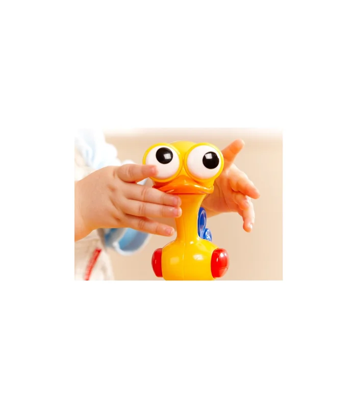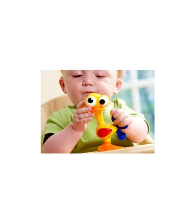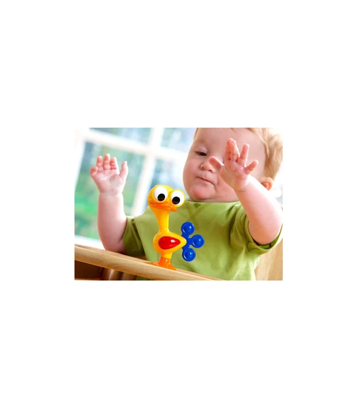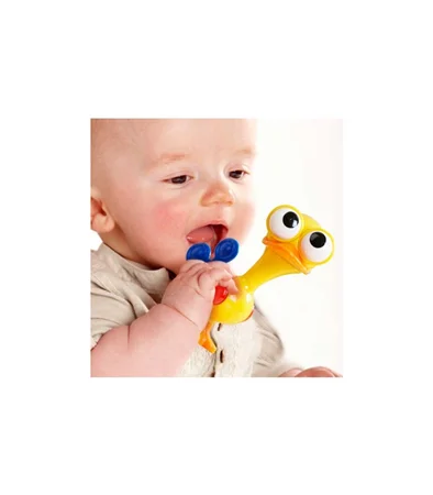 پرنده چشم گردان تولو Tolo یکی از اسباب بازیهای مناسب سیسمونی نوزاد است چرا که مهارتهای حرکتی کودک را تقویت کرده و باعث هماهنگی بین اعضای بدن و مغز میشود. این اسباب بازی علاوه بر مفصلی بودن چشمها و سر، در صورت فشار دادن بالهای کناری صدای سوت مانند خواهند داشت و اگر آن را تکان دهید صدای جغجغهای به گوشتان خواهد رسید. نکته جالب این اسباب بازی دندونی این است که در کنار آن میتوانید پلیکان و پرنده چشم گردان را هم تهیه کنید تا سیسمونی فرزندتان با این پرندهها تکمیل شود.