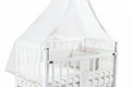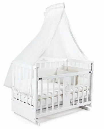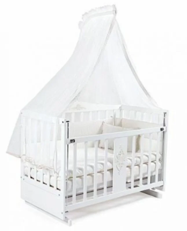 - ست خواب کامل: گهواره مدل لوتوس با یک ست خواب کامل عرضه میشود که شامل لحاف، تشک، بالش و پشهبند است. این ست از الیاف میکروفایبر 100 درصد پنبه تهیه شده که ضد حساسیت و تعریق بوده و دارای گردش هوای مناسب است.