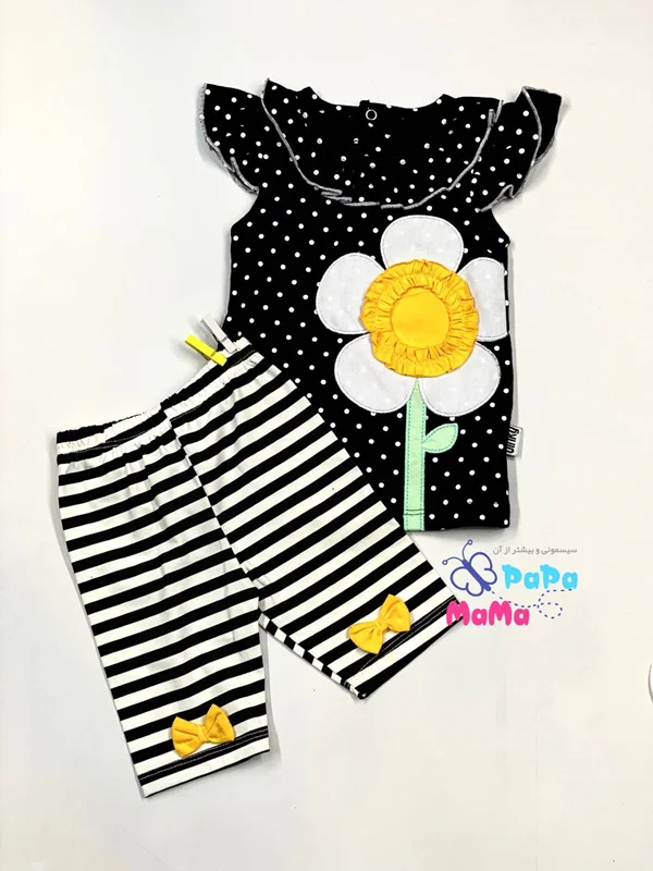 بلوز شورت دخترانه گلدوزی که در فروشگاه ماماپاپالند(mamapapaland.ir) به صورت حضوری و اینترنتی قابل تهیه است.ست دارای بلوز با طرح برجسته گل و شلوارک با طرح راه راه و پاپیون میباشد.جنس پارچه از نوع ضد حساسیت و ضد تعریق است.پشت بلوز برای راحتی فرزند دلبند شما دارای چند دکمه است که پوشیدن بلوز را آسان میکند.لازم به ذکر است قبل از سفارش با کمک جدول سایز بندی زیر سفارش خود را ثبت کنید. سایز1 (0تا3) ,سایز2(3تا6),سایز3 (6تا9),سایز4(9تا12),سایز5(12تا18 ماه)