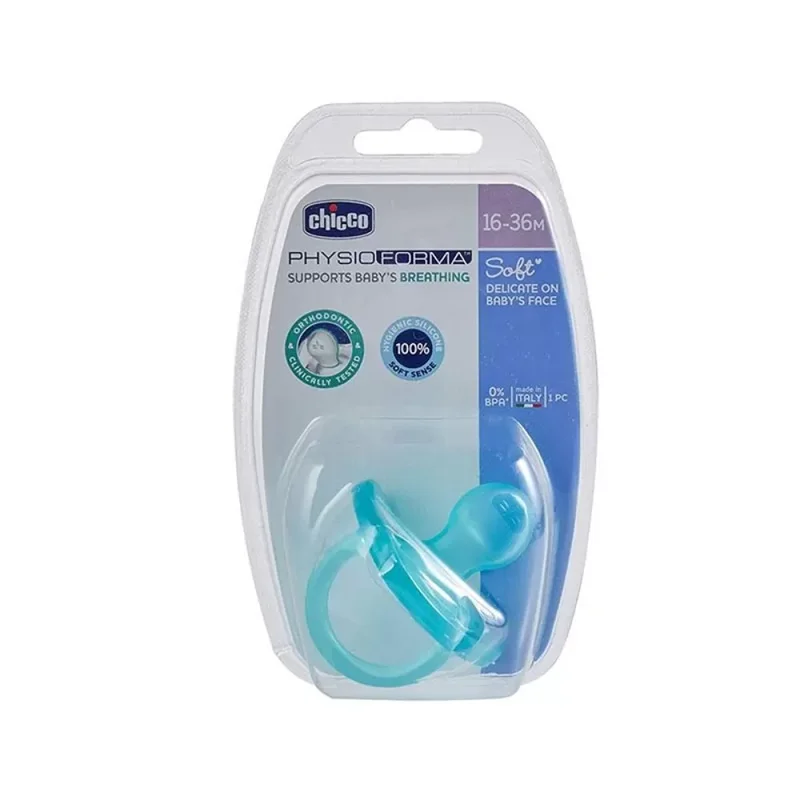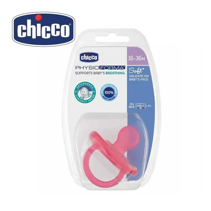 پستانک فیزیو سافت ۱۶ تا ۳۶ ماهگی چیکو از جنس سیلیکون ساخته شده است. در این محصول مواد BPA وجود ندارد و در نتیجه استفاده از آن سبب به خطر افتادن سلامتی کودک نمیشود. این پستانک بسیار نرم است و طراحی ارگونومیک آن سازگار با دهان کودک صورت گرفته است. در بسته بندی این محصول یک پستانک وجود دارد. این پستانک در حقیقت یک پستانک ارتودنسی است که از وارد شدن آسیب به فک و دندان کودک جلوگیری مینماید.