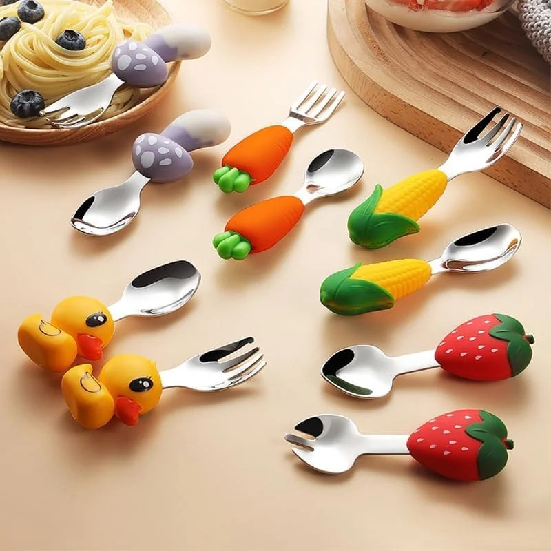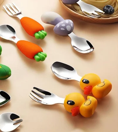 قاشق چنگال کودک بهترین وسیله برای تشویق کودکان به بازی و خوردن وعده هایی غذایی میباشد طرح و رنگ های جذاب این محصول باعث شده کودکان تشویق به غذا خوردن شوند همچنین این محصول کاملا ایمن بوده و با استفاده از مواد بسیار با کیفیت بدون BPE ساخته شده تا برای کودکان هیچ گونه ضرری نداشته باشد.