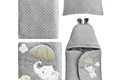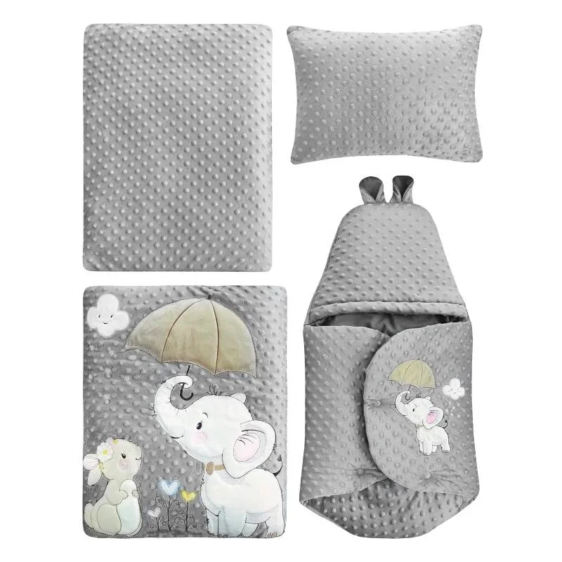 سرویس کامل خواب کودک شامل چهار تیکه لحاف، تشک، بالش و فنداق فرنگی است. جنس پارچه این سرویس خواب مخمل ترک بوده و پرز نمیدهد. بنابراین برای نوزادان مناسب بوده و باعث آلرژی و حساسیت دلبند شما نمیگردد. این سرویس بسیار کمجا و مناسب مهمانی و مسافرت است. همچنین کیف همراه محصول باعث حمل آسان آن میشود.