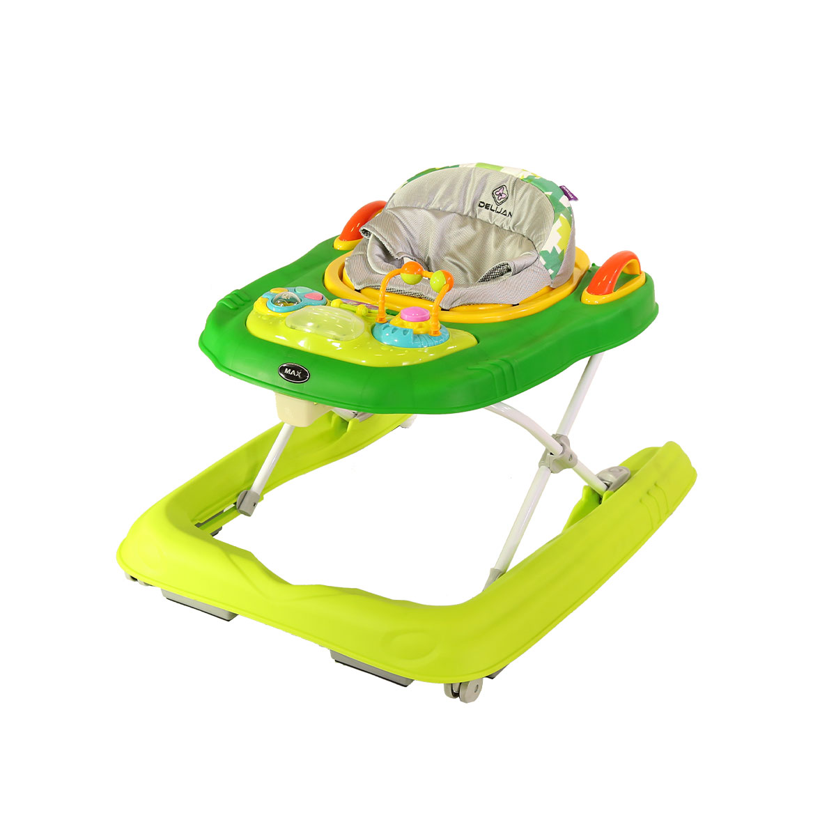 ۴. بخش اسباببازی و سرگرمی: داشتن یک صفحه بازی رنگارنگ با اسباببازیهای آموزشی، باعث میشود کودک شما با اشتیاق بیشتری در روروئک بنشیند و با محیط اطراف تعامل داشته باشد. این اسباببازیها به تقویت مهارتهای حرکتی ظریف و حواس پنجگانه نوزاد کمک شایانی میکنند. 🧸🎹