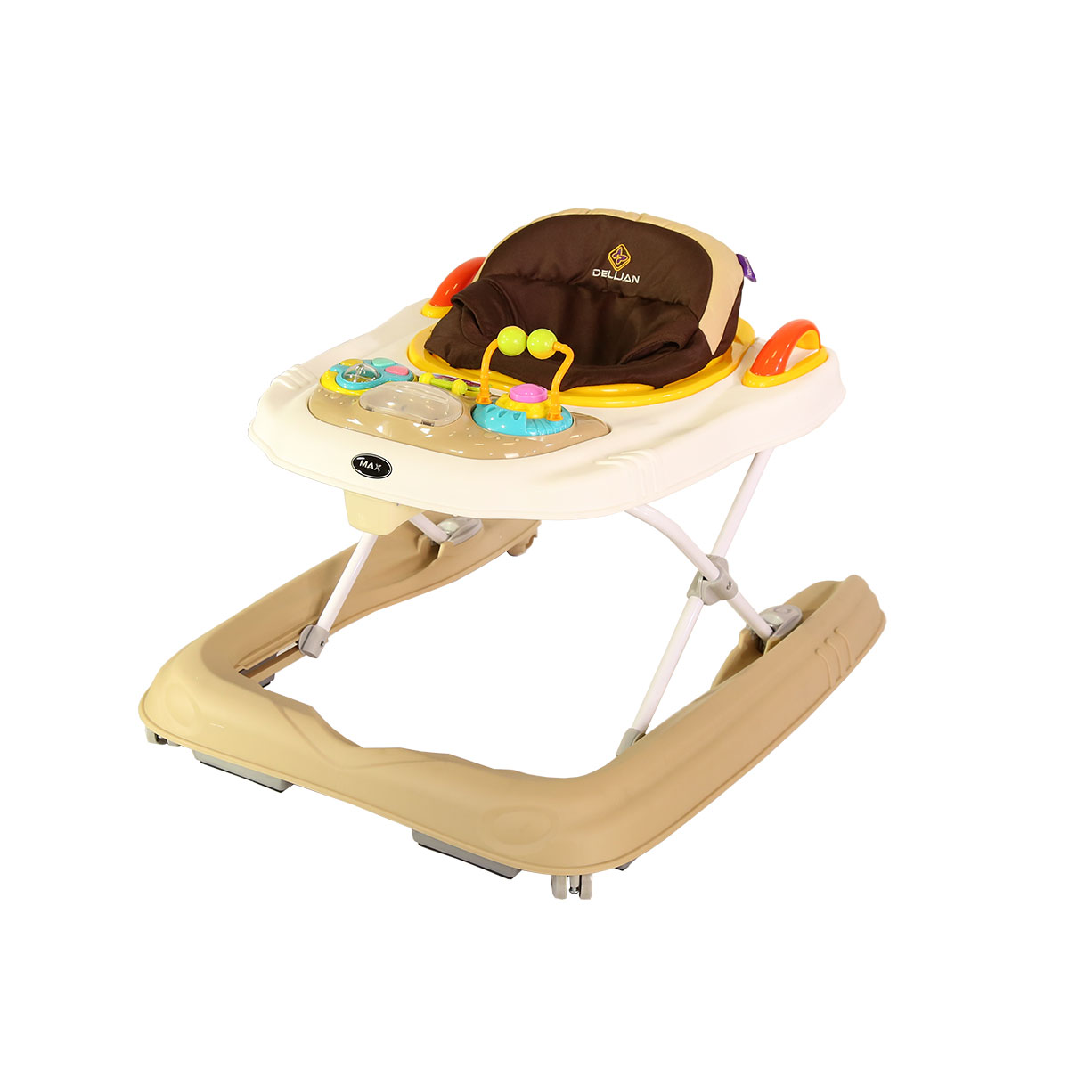 ۱. طراحی ارگونومیک و پایدار: ساختار این روروئک به گونهای مهندسی شده است که مرکز ثقل پایین دارد و از واژگونی شدن نوزاد هنگام هل دادن دستگاه جلوگیری میکند. این ویژگی به کودک شما اعتماد به نفس لازم برای برداشتن قدمهای اول را میدهد. 🚶♂️