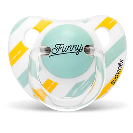پستانک آناتومیک طرح فانی راه راه سایز 6-18 ماه، محصول شرکت اسپانیایی سواوینکس suavinex می باشد. این پستانک ارتودنسی طراحی طبیعی، ظریف، زیبا و شیکی دارد که بر اساس فرم فک و دهان کودک ساخته شده و هیچ آسیبی به کودک نمی زند.کیفیت ساخت پستانک مانند سایر محصولات شرکت سوآوینکس، بسیار بالا است و فاقد مواد مضر و شیمیایی مثل بیسفنول آ که اثر بدی بر رشد هومون های کودکان دارد، می باشد.جنس سری پستانک soavinex سلیکونی، نرم و منعطف است. بدنهی آن پلاستیکی و دارای دسته است. روی بدنهی پستونک، سوراخ هایی برای ایجاد جریان هوا و عدم تعریق پوست کودک وجود دارد.نکته: از دغدغه های مادر و پدر ها هنگام خرید پستانک، مضر بودن یا نبودن آن است. باید بدانید یک پستانک خوب و استاندارد نه تنها ضرری برای کودک ندارد، بلکه فواید زیادی نیز دارد.طبق تحقیققات استفاده از پستانک موجب کاهش خطر ابتلا به سندرم ناگهانی مرگ در نوزادان می شود.(SIDS)مکیدن پستانک ناراحتی و درد های ناشی از کولیک و ریفلاکس کودک را تسکین می دهد. خوردن پستانک در شرایط استرس زا و دردناک موجب آرامش کودک است.