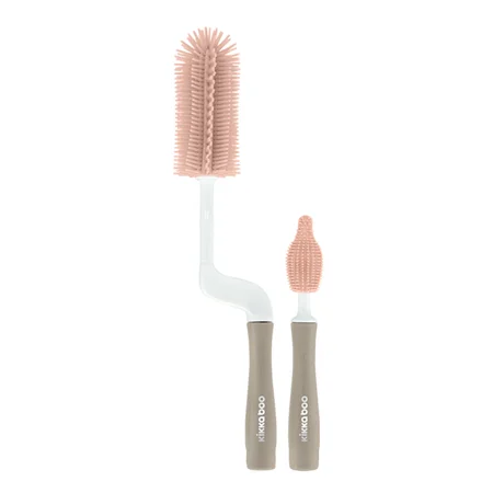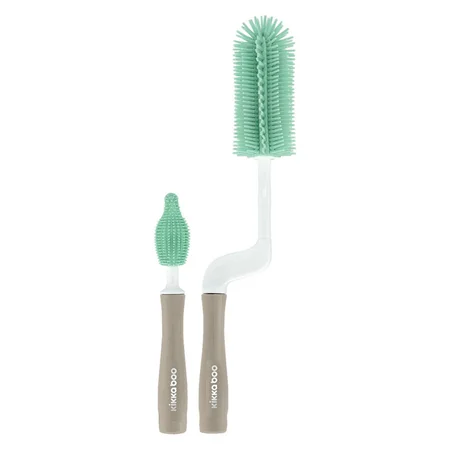برس شیشه شور سیلیکونی دو عددی کیکابو kikka boo دارای سری از جنس سیلیکون، با فرچه های نرم و منعطف است. این شیشه شور، با سری نرم، به هیچ عنوان روی شیشه خط نمی اندازد و یکی از بهترین محصولات برای شست و شوی شیشه و سرشیشه است. این محصول دارای دو برس در سایزهای مختلف است. برس بزرگ برای شست و شوی شیشه شیر، لیوان، فلاسک و … مناسب است. برس کوچک مناسب شست و شوی سرشیشه میباشد. شیشه شور سیلیکونی کیکابو ساخته شده از مواد بسیار با کیفیت و مرغوب است. فاقد BPA و بیسفنول آ است.دسته ی این محصول طوری طراحی شده که شما میتوانید آن را به راحتی در دست بگیرید و استفاده کنید. همچنین بعد از استفاده، آب یا مواد شوینده در هیچ قسمت این محصول تجمع نمیکند. شیشه شور سیلیکونی دو تیکه کیکابو مقاوم در دمای بالاتر از 140 درجه ی سانتی گراد است.