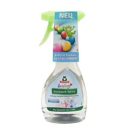 سپری لکه بر البسه کودک آلمانی Frosch تهیه شده با فرمولاسیون تخصصی و حاوی ترکیبات طبیعی است که از بین برنده موثر و قدرتمند لکه های سر سختسطوح مختلف می باشد.این محصول ضد حساسیت بوده و تقویت کننده تاثیر مواد شوینده می باشد.لباس های نوزادان و کودکان به علت نوع تغذیه و جنب و جوشی که دارند، اکثر مواقع در معرض چرک شدن و ایجاد لکه هایی است که به آسانی پاک نمی شوند. از سوی دیگر به دلیل این که این نوع البسه از پارچه های بسیار لطیف و نرم تهیه می گردند در انتخاب مواد شوینده نیز باید بیشتر دقت نموده و شوینده هایی را برگزینید که علاوه بر قدرت پاک کنندگی بالا، برای پوست فرزند دلبندتان مضر نباشند و به کیفیت لباس های آن ها نیز آسیب نرسانند.علاوه بر لباس های کودکان ممکن سطوح مختلف مانند صندلی غذا خوری ، روروئک ، کالسکه ، اسباب بازی ها ، کیف لوازم کودک و… لکه هایی ایجاد شود ، شما میتوانید به وسیله اسپری لکه بر البسه کودک آلمانی Frosch این لکه ها را به راحتی از روی سطوح مختلف پاک کنید .