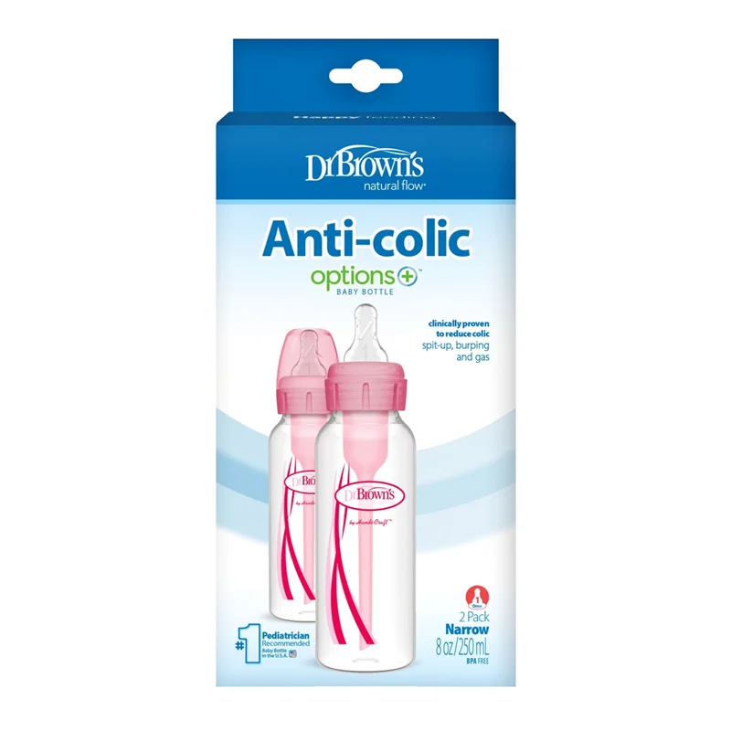 بررسی و توضیحات محصول شیشه شیر طلقی باریک 250 میل آپشن پلاس صورتی دکتر براونز Dr Browns