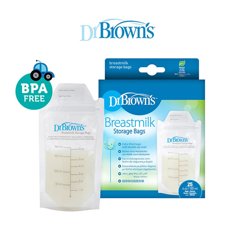 کیسه ذخیره شیر مادر دکتر براون Dr browns بسته 25 عددی وسیله ای مناسب و کاملا بهداشتی برای نگهداری شیر مادرانی است که شاغلند و میخواهند شیر خود را که با شیردوش دوشیده اند در ظرفی استریل نهگداری کنند بسیار مناسب است. این کیسه های نگهدارنده شیر می تواند کمک بزرگی برای والدین باشد تا طی مدت زمان نبودشان کودک بتواند از شیر مادر تغذیه کند.کیسه ذخیره شیر مادر Dr browns بسته 25 عددی کاملا استریل بادوام و مهر و موم شده با زیپ کیپ داخلی تولید شده است.شما می توانید این کیسه را داخل یخچال و فریزر نگهداری کنید و یک ذخیره غذایی سودمند برای فرزندتان در مواقع ضروری داشته باشید.