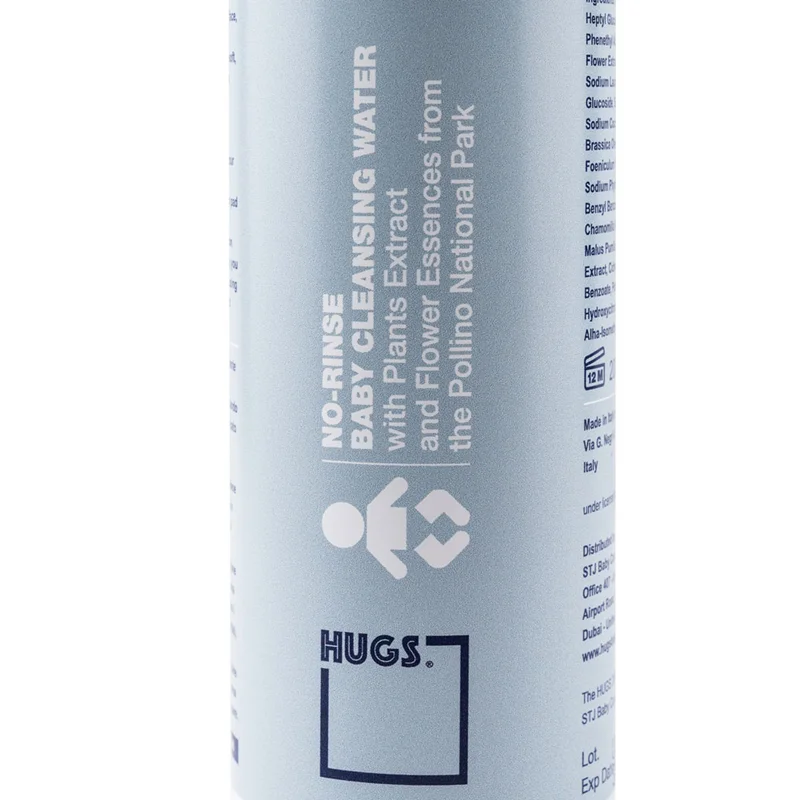 محلول پاککننده نوزاد هاگز Hugs حاوی ترکیبات طبیعی و گیاهی است که از پارک ملی پولینو استخراج شدهاند. این ترکیبات شامل عصاره آلوئهورا، کالاندولا، بابونه و عصارههای گیاهی دیگر است که به پوست نوزاد رطوبت رسانده و از خشکی آن جلوگیری میکنند.