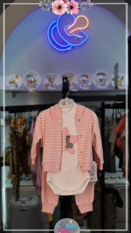 ست سهتکه دخترانه ال سی elci با طراحی زیبا و جذاب، یک گزینه مناسب برای لباس عیدی نوزادان است. رنگ صورتی جذاب و طرحهای شاداب آن، باعث میشوند که نوزاد شما در جشنها و مراسم به چشم بیفتد. سویشرت با دکمههای فشاری در جلو بسته میشود که علاوه بر آسانی در استفاده، به نوزاد شما اجازهٔ حرکت آزادانه میدهد. بادی زیر دکمه با طرحی از ستاره و خرس طراحی شده است که به آن جذابیت بیشتری میبخشد. همچنین، شلوار کمرکش با طرحی ساده اما شیک، که دارای دم پا با کشبافت است، موجب افزایش راحتی نوزاد در حرکت میشود.